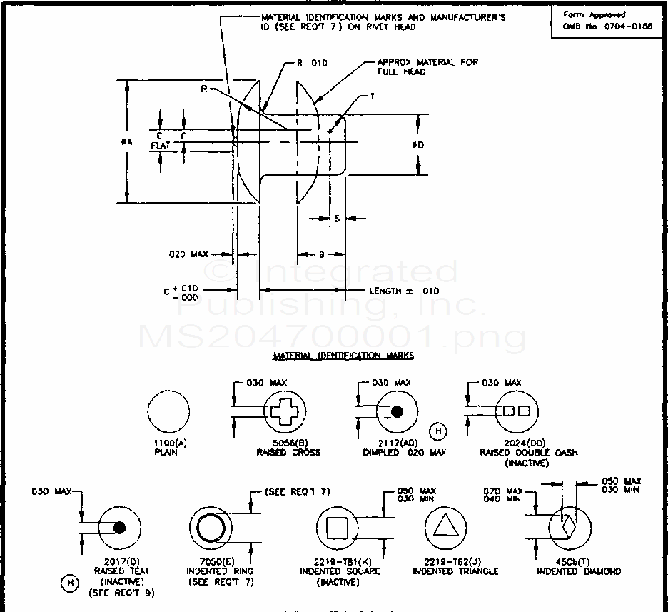 MS20470 Rivet, Solid Universal Head, Aluminum Alloy And Titanium Columbium Alloy (S/S By Nasm20470)