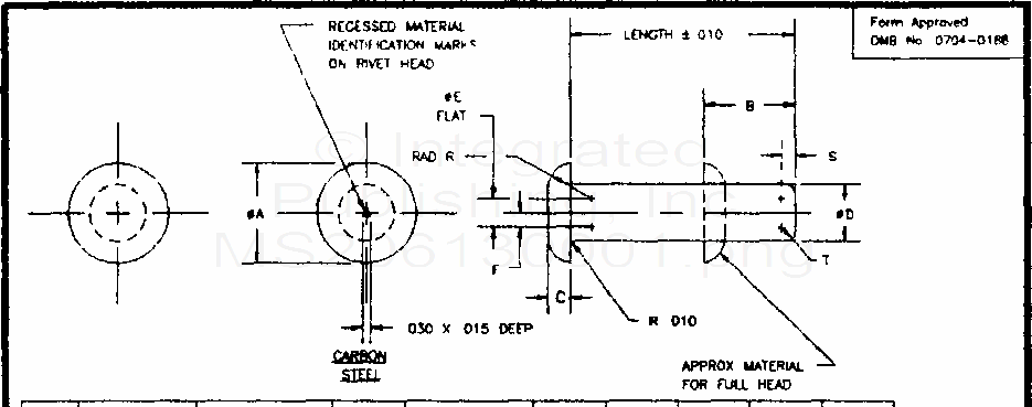 MS20613 Rivet, Solid-Universal Head, Steel, Carbon And Steel, Corrosion-Resistant (S/S By Nasm20613)