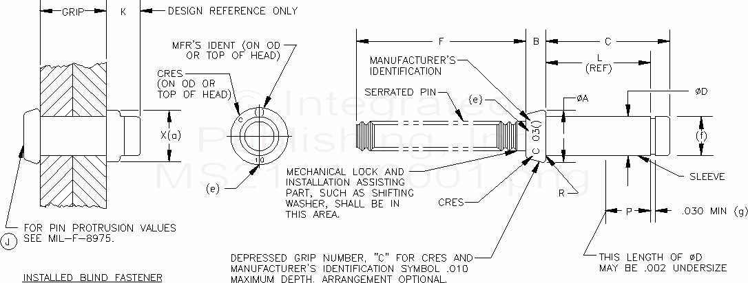 MS21141 Fastener, Blind, High Strength, Pull Type, Positive Mechanical Lock, Protruding Head, Corrosion Resisting Steel, 95 Ksi Fsu